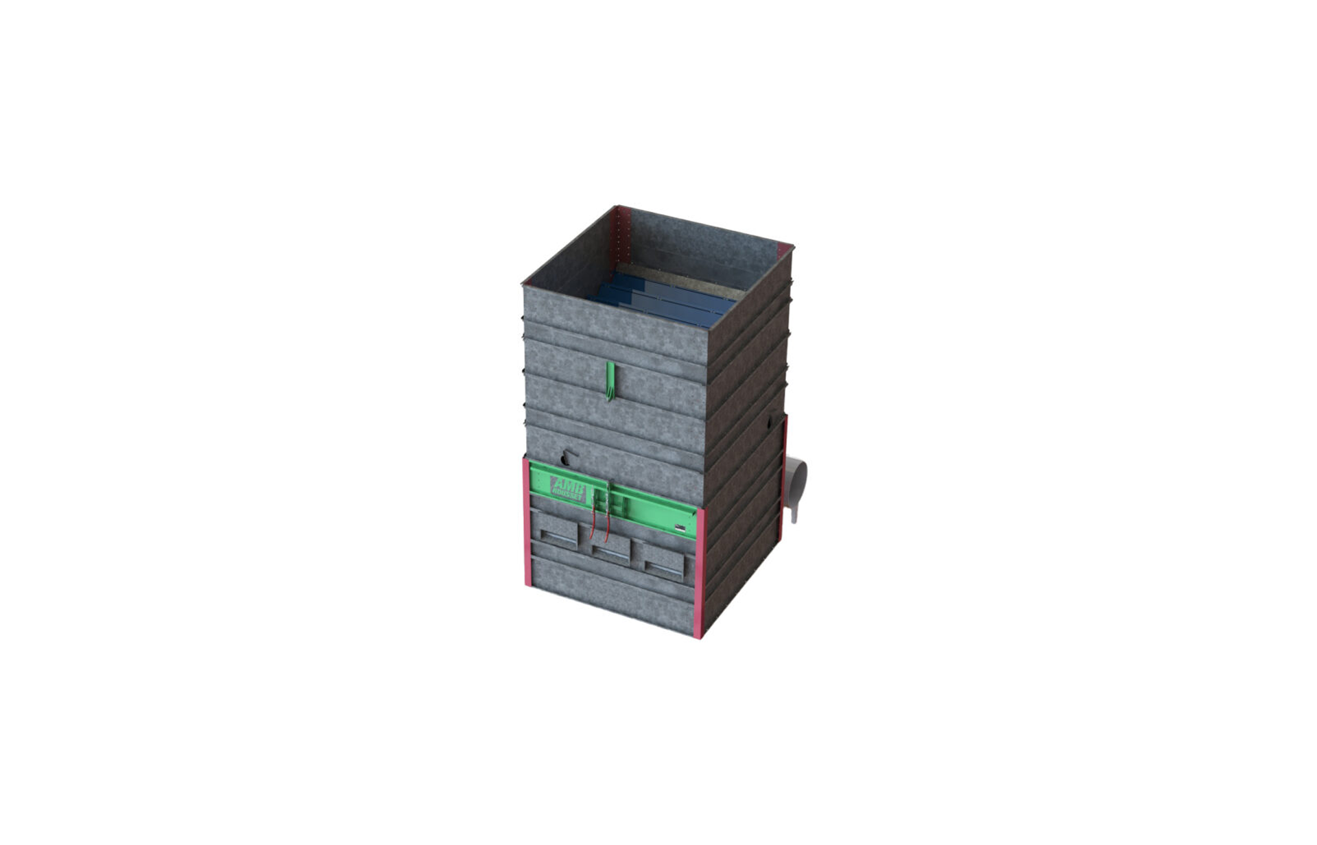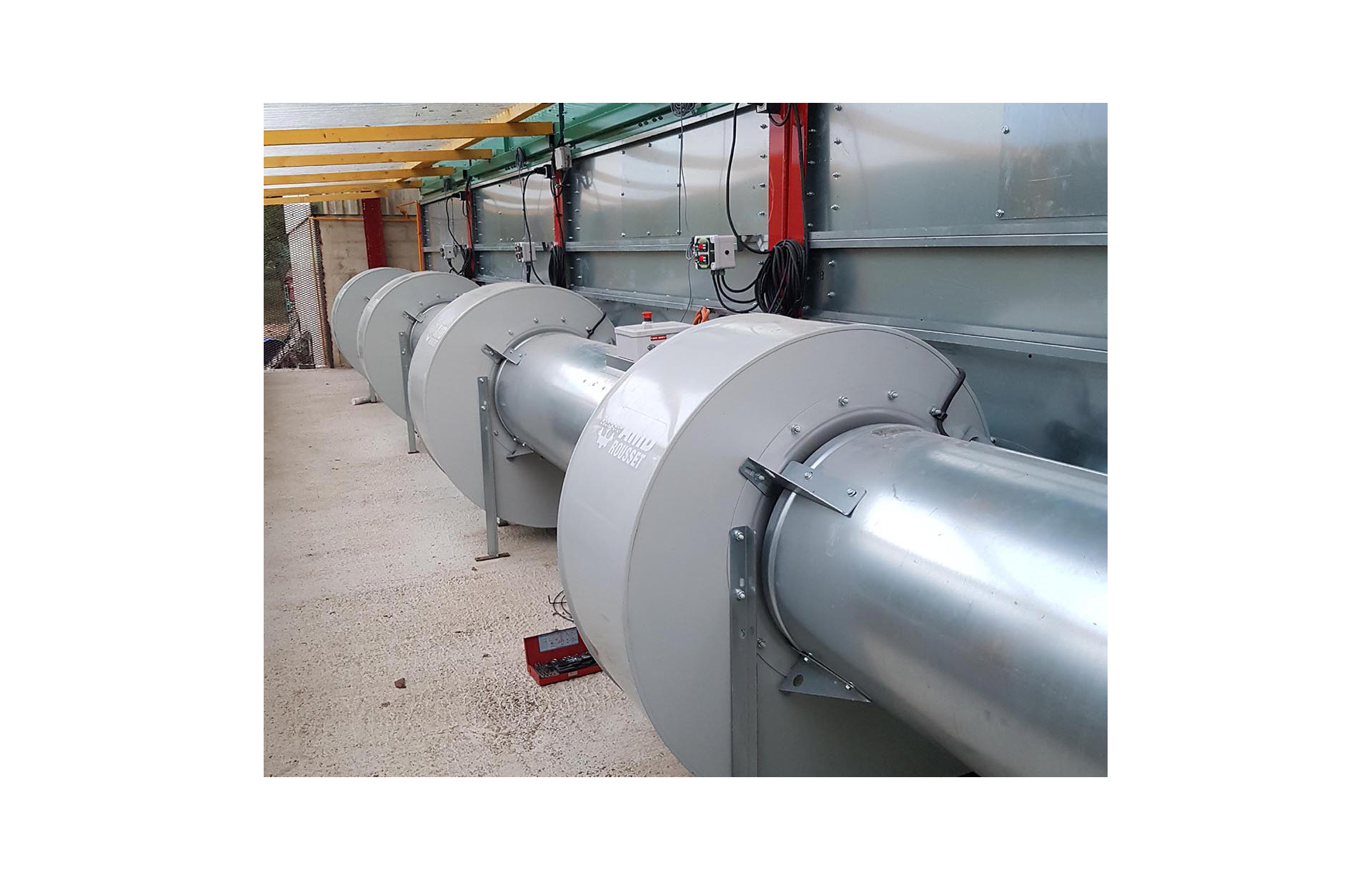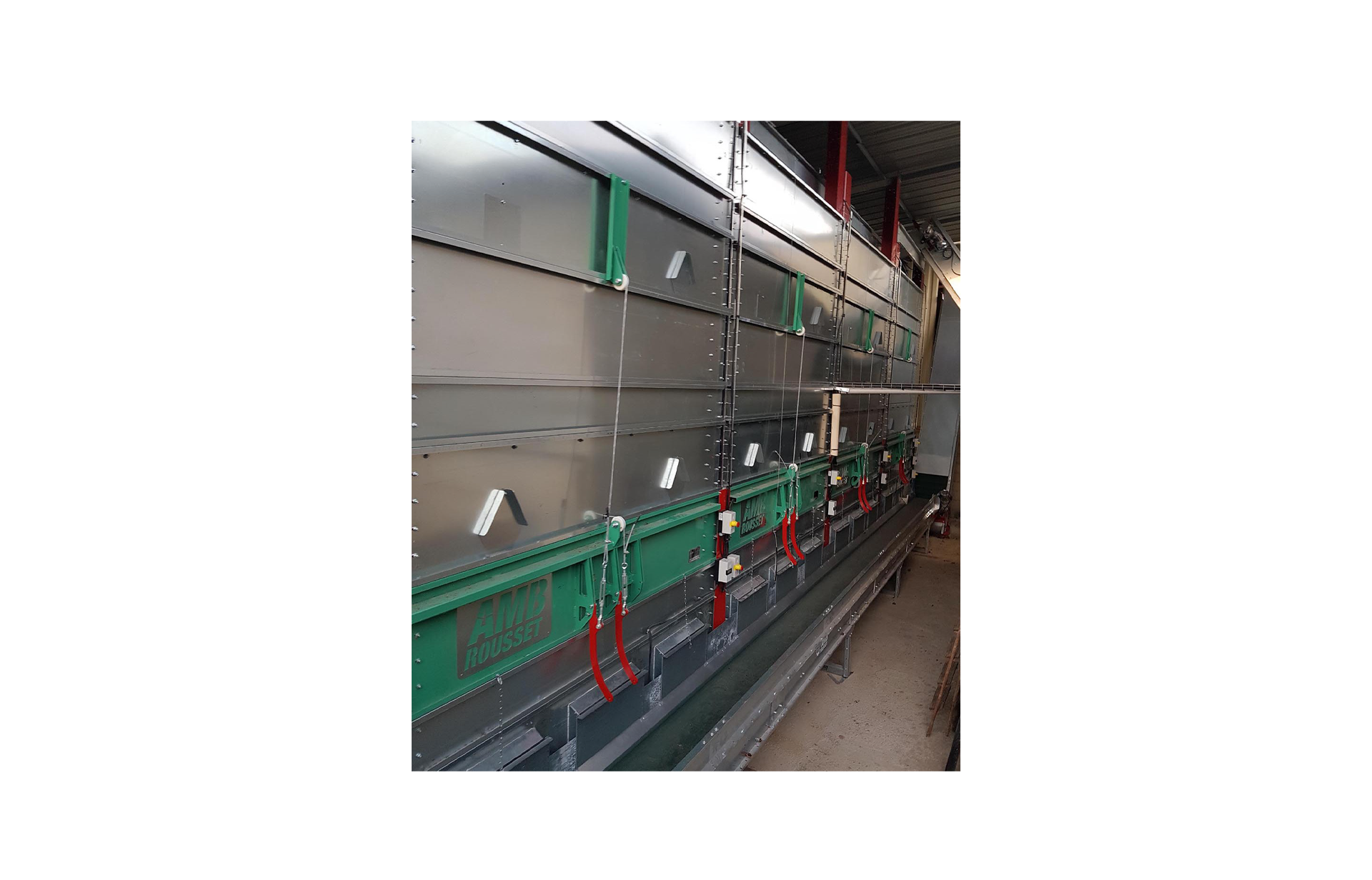 | Technical specifications | Bolted assembly of galvanized profiles and sheets. Helical or centrifugal hot air generator of different power depending on the dimensions. Vibrating floor motor power (0,71kW). |