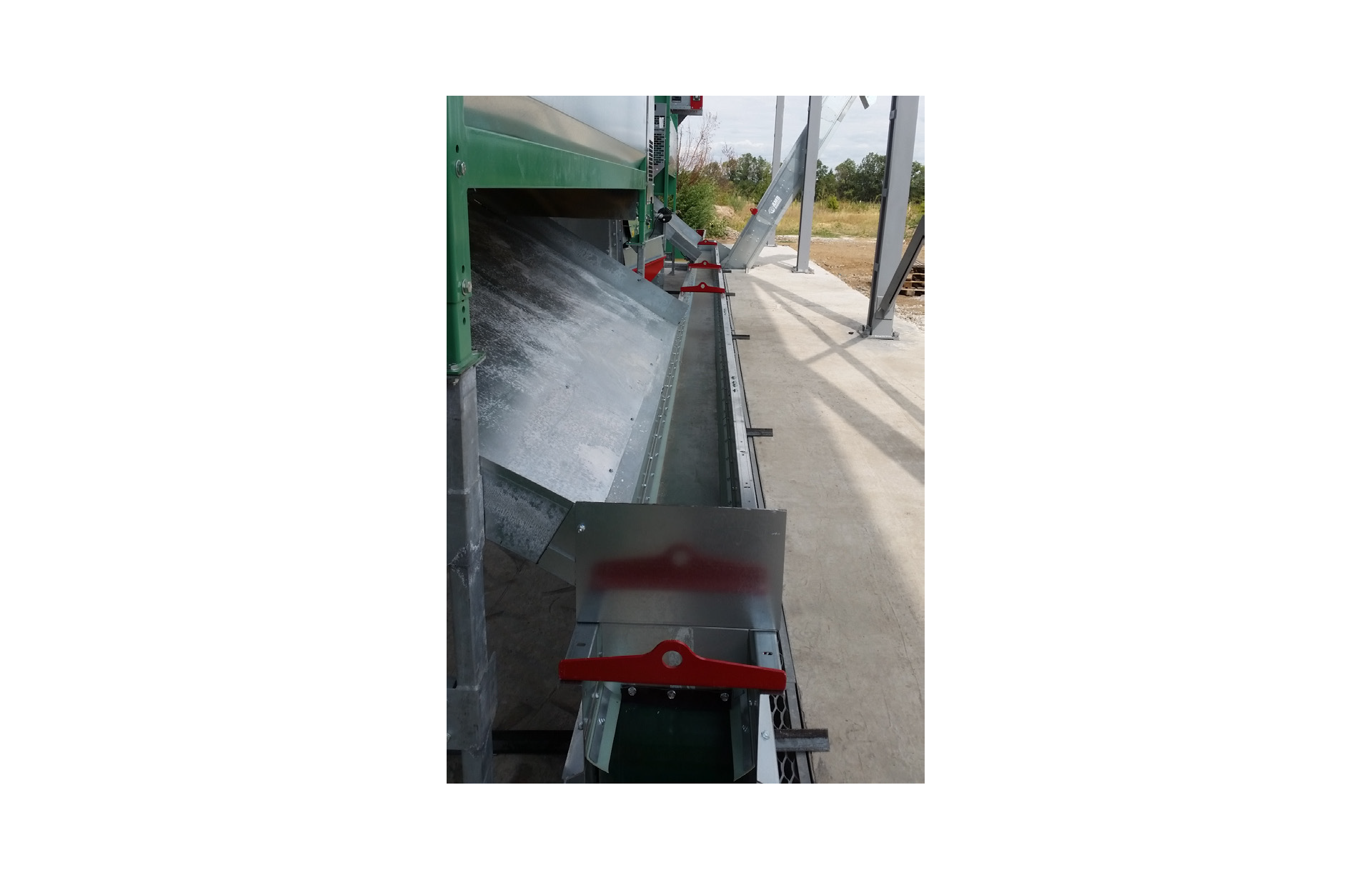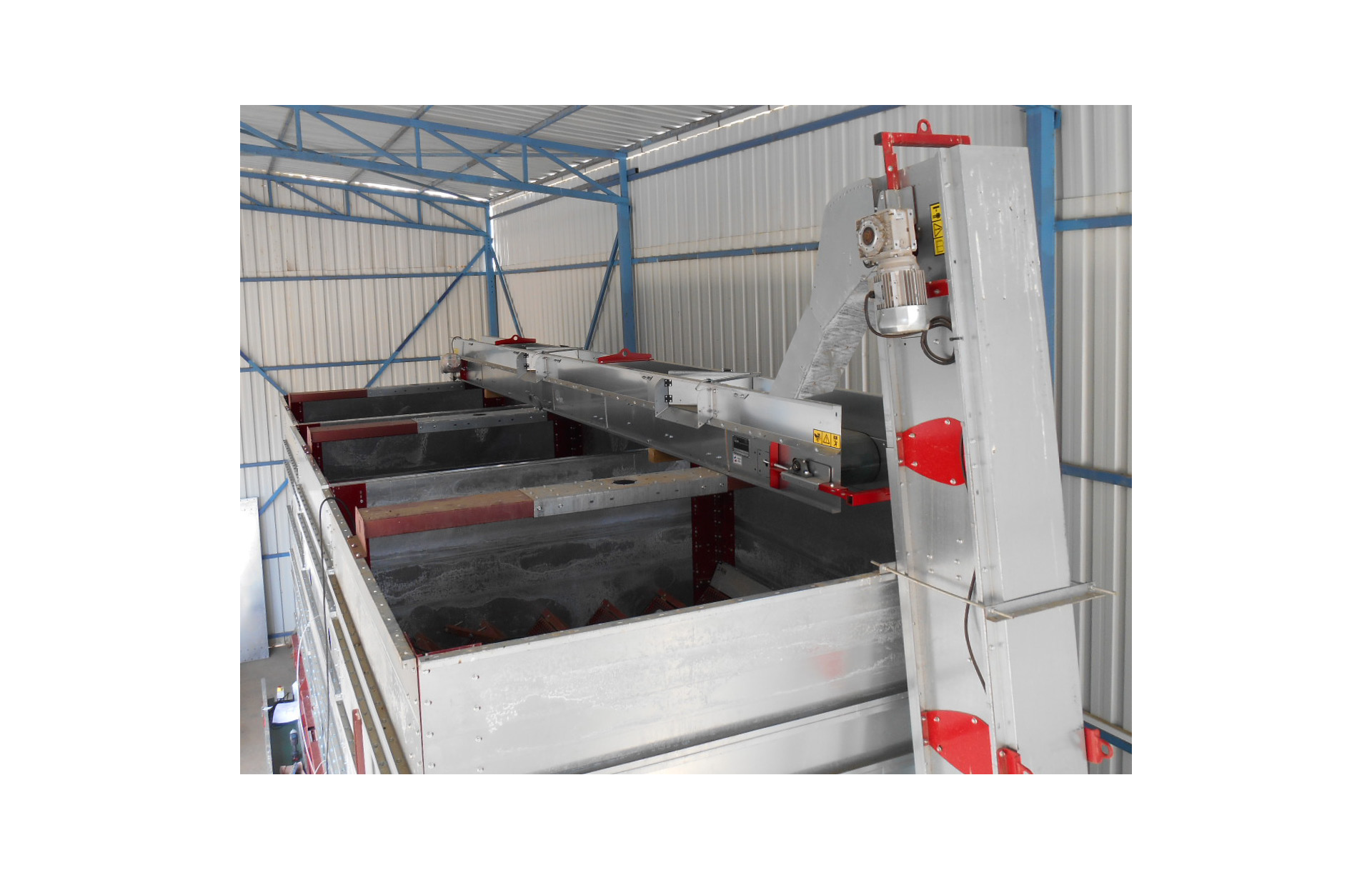 | კონვეიერის ლენტი | ლენტის სიგანე: 300, 400, 500, 600 მმ; მწვანე PVC ლენტი სწორი შიპებით, სიმაღლე 60 ნაბიჯი 150 მმ — ელევატორებისთვის 45°/60° დახრით; მწვანე PVC ლენტი დახრილი შიპებით, სიმაღლე 60 ნაბიჯი 120 მმ — ელევატორებისთვის 80°/90° დახრით; ლენტის დაჭიმვა ერთ წერტილში წამყვანი როლიკის გადაადგილებით |